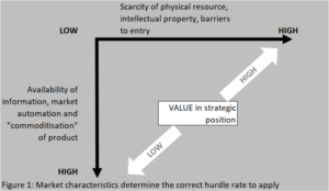 As figure one shows markets can differ a great deal in the level of information available to participants, the homogeny of the product, and the potential for strategic positioning to create value through differentiation, availability of resources (both physical and intellectual) and barriers to entry.
